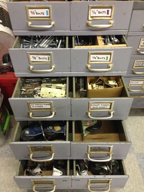 "Kate’s skill for organization is extraordinary. In just a couple of weeks, she made sense of 50 years of accumulated props and furniture and left us able to find what we needed with room to walk through the collection. She also organized our hand tools and several cabinets of hardware (hinges, bolts, wheels, etc.). Now we can find the hardware we have on hand instead of buying new for every project. Kate has saved us considerable time and money by making our materials more accessible." ~ Carl S., Montclair Operetta Club